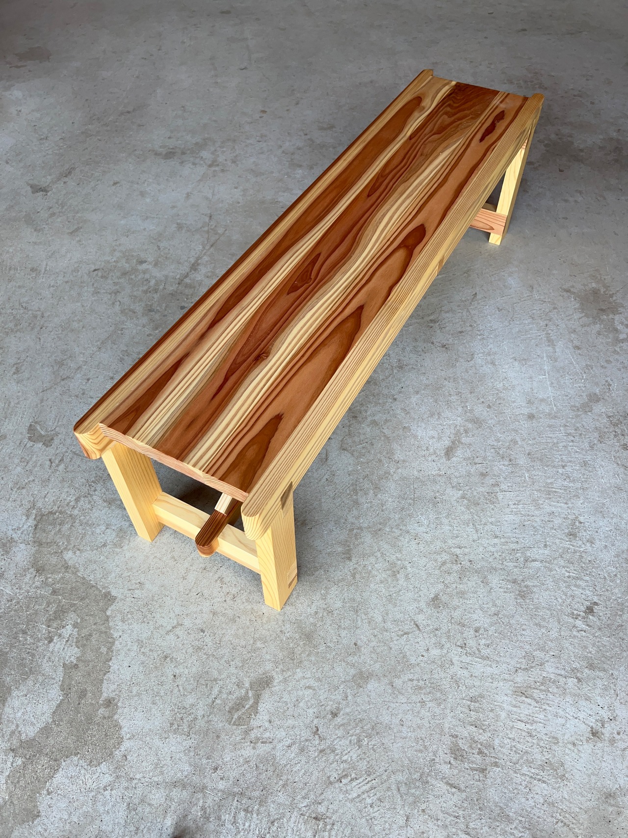 程よい大きさで圧迫感の少ないコンパクトなベンチです。ゆったりとくつろげるように座面は少し低めに仕上げました。懐かしいたたずまいは時間とともにお部屋に馴染みます。