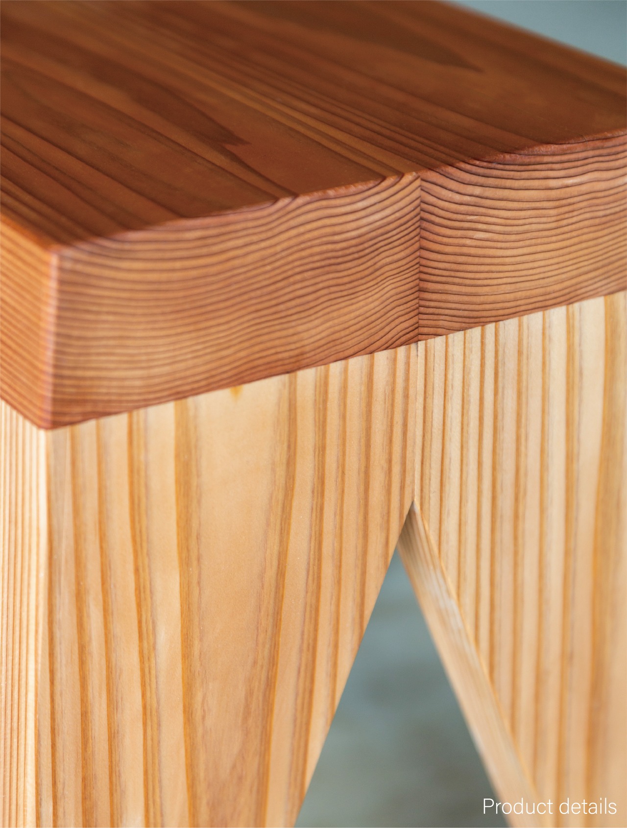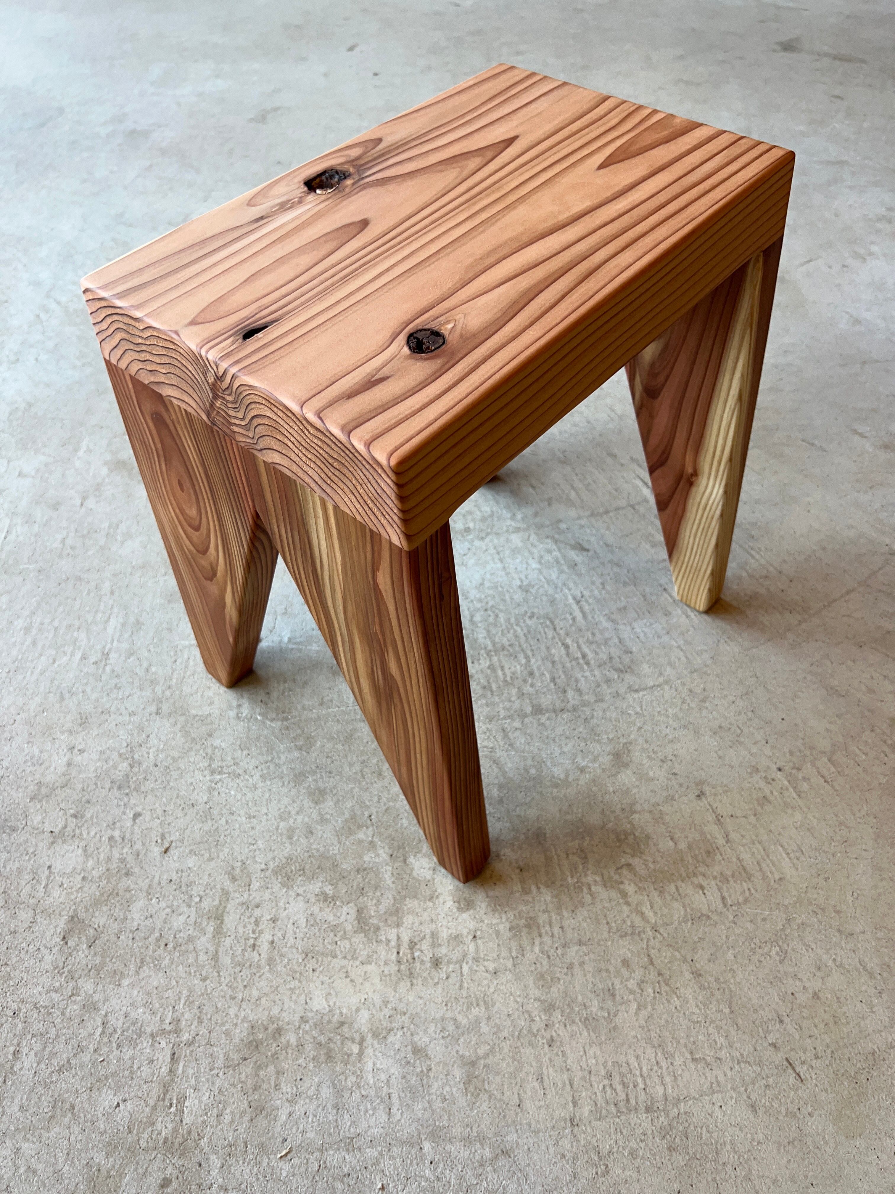 木材を贅沢に使った、厚めの座面が特徴的なスツールです。安定感のあるシルエットは背もたれが無くても落ち着いて座ることができます。本や飲み物などちょっとしたものを置くのにも便利です。