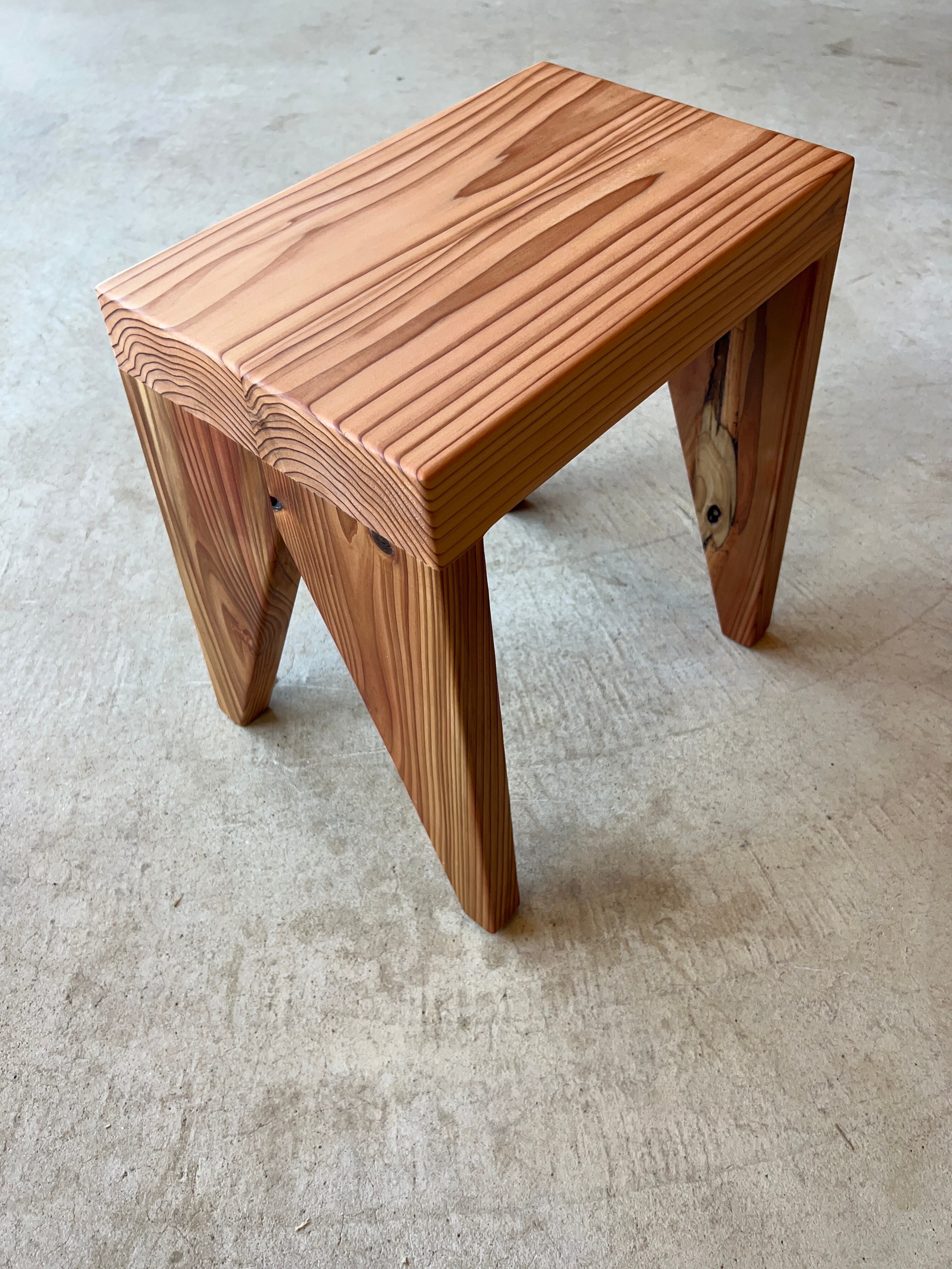 木材を贅沢に使った、厚めの座面が特徴的なスツールです。安定感のあるシルエットは背もたれが無くても落ち着いて座ることができます。本や飲み物などちょっとしたものを置くのにも便利です。