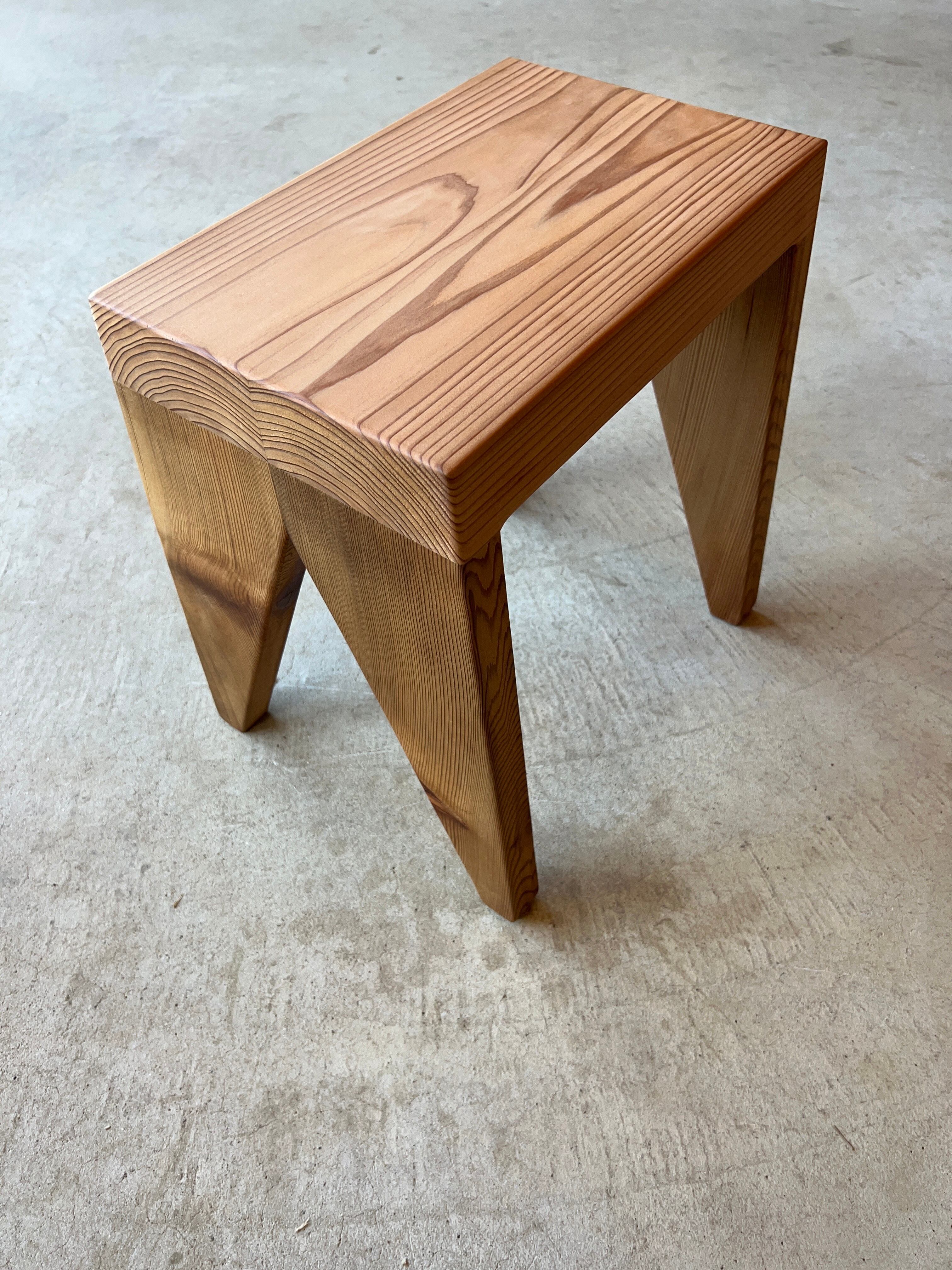 木材を贅沢に使った、厚めの座面が特徴的なスツールです。安定感のあるシルエットは背もたれが無くても落ち着いて座ることができます。本や飲み物などちょっとしたものを置くのにも便利です。