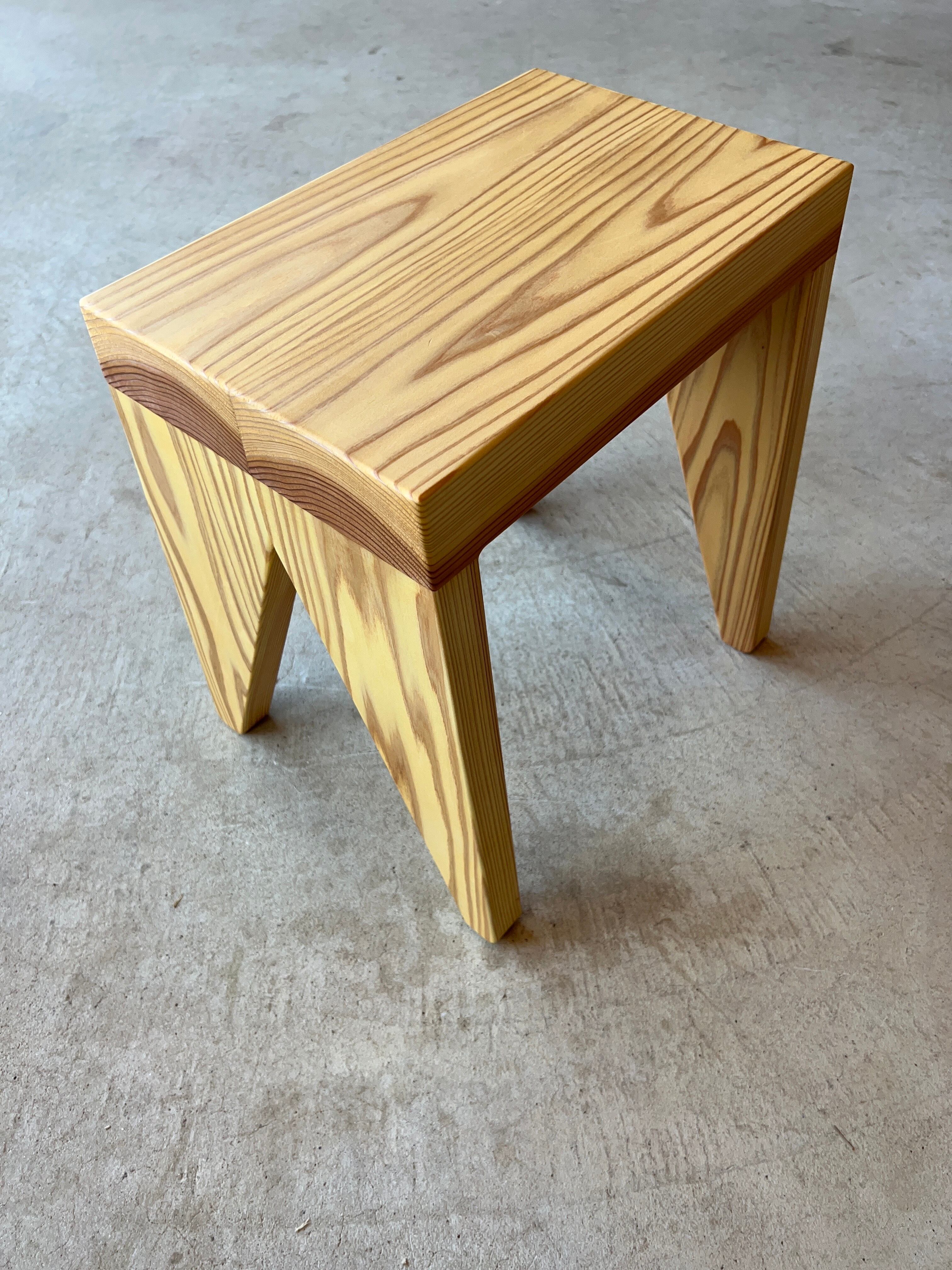 木材を贅沢に使った、厚めの座面が特徴的なスツールです。安定感のあるシルエットは背もたれが無くても落ち着いて座ることができます。本や飲み物などちょっとしたものを置くのにも便利です。