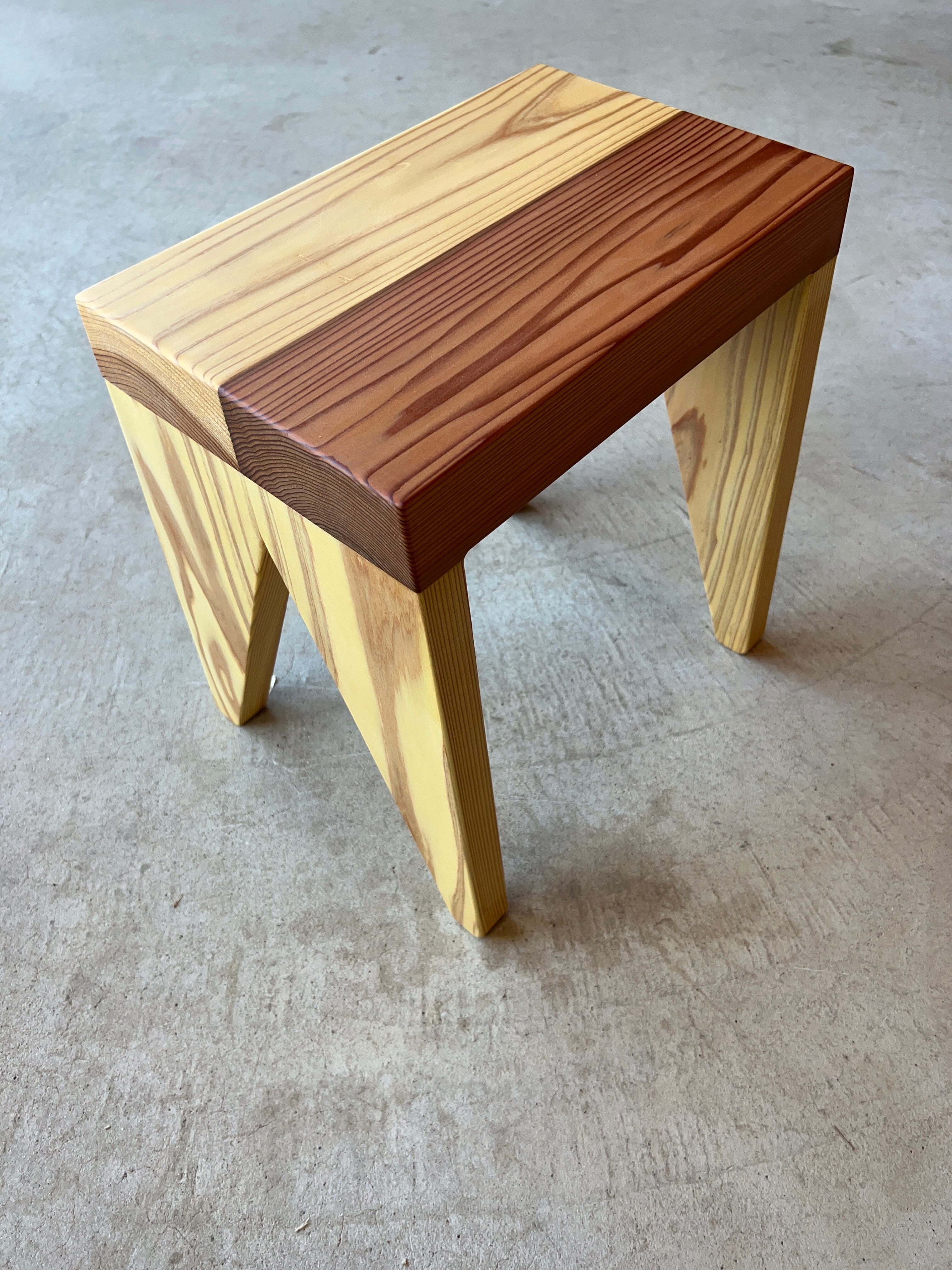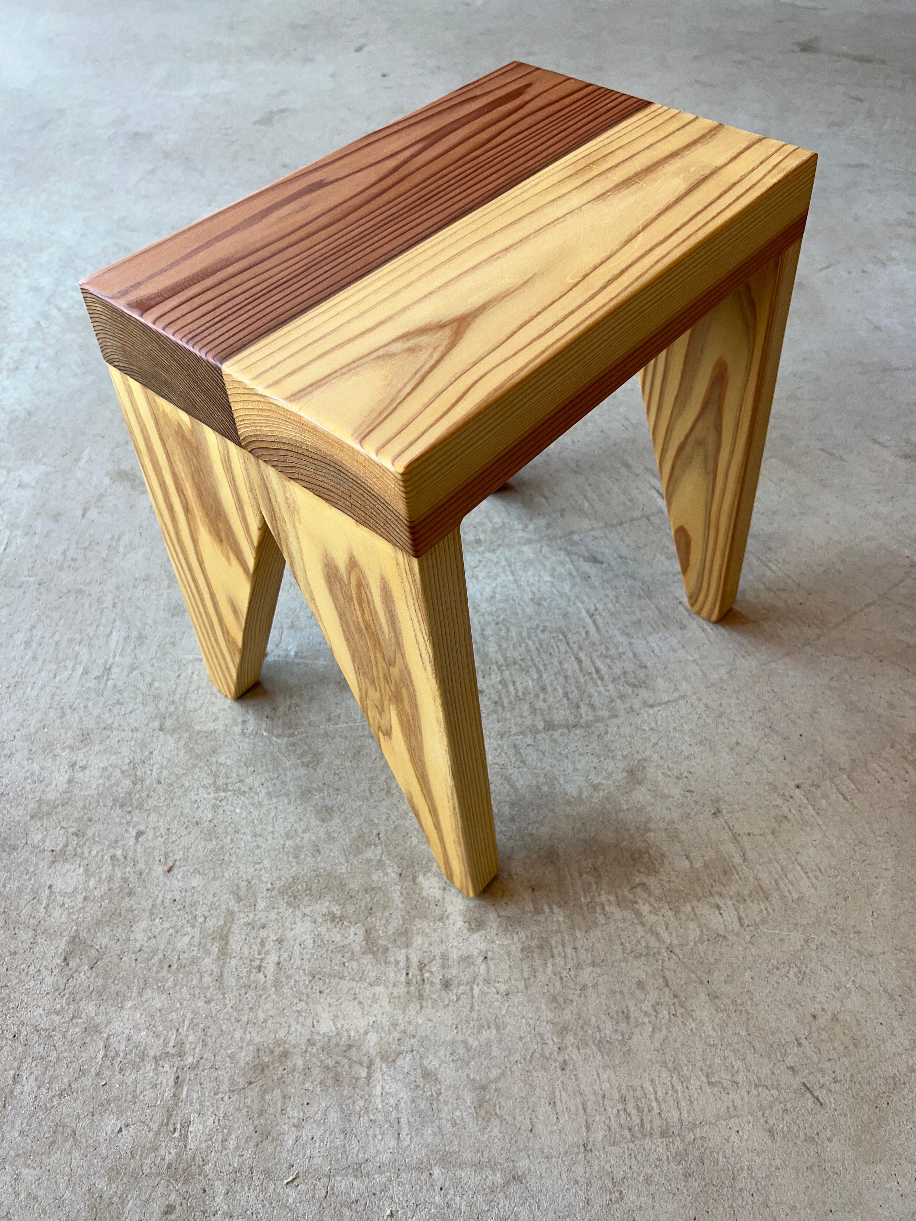木材を贅沢に使った、厚めの座面が特徴的なスツールです。安定感のあるシルエットは背もたれが無くても落ち着いて座ることができます。本や飲み物などちょっとしたものを置くのにも便利です。