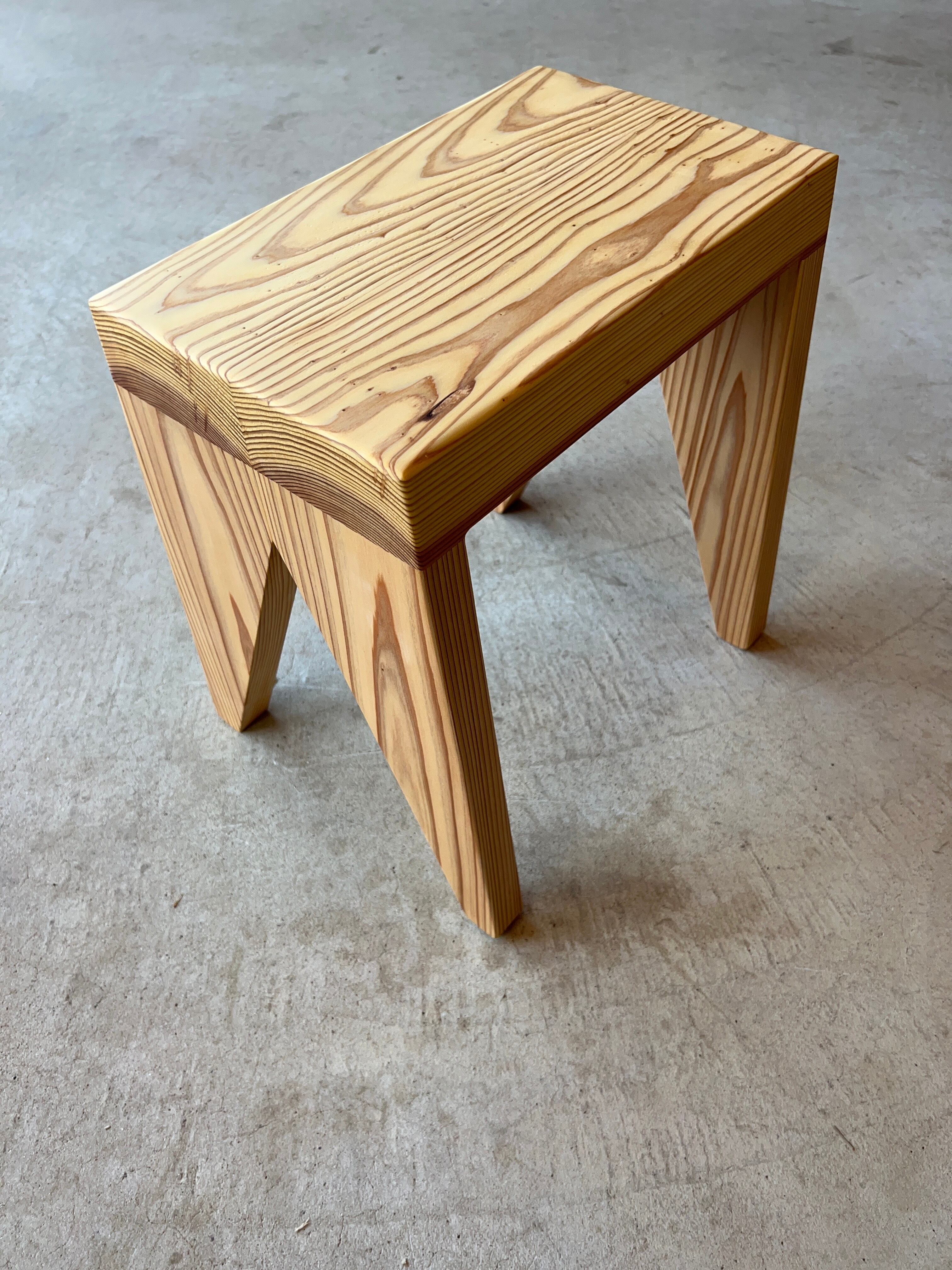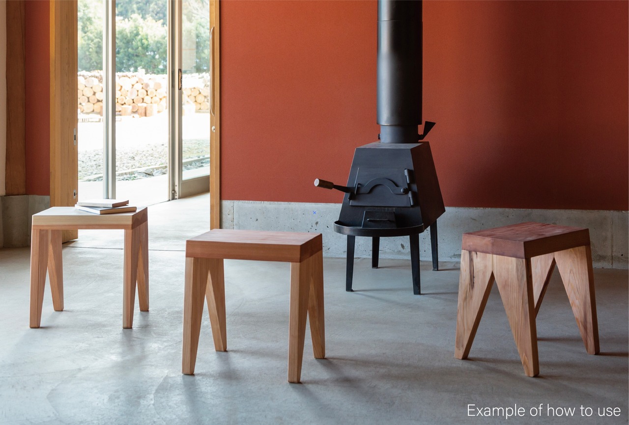 木材を贅沢に使った、厚めの座面が特徴的なスツールです。安定感のあるシルエットは背もたれが無くても落ち着いて座ることができます。本や飲み物などちょっとしたものを置くのにも便利です。