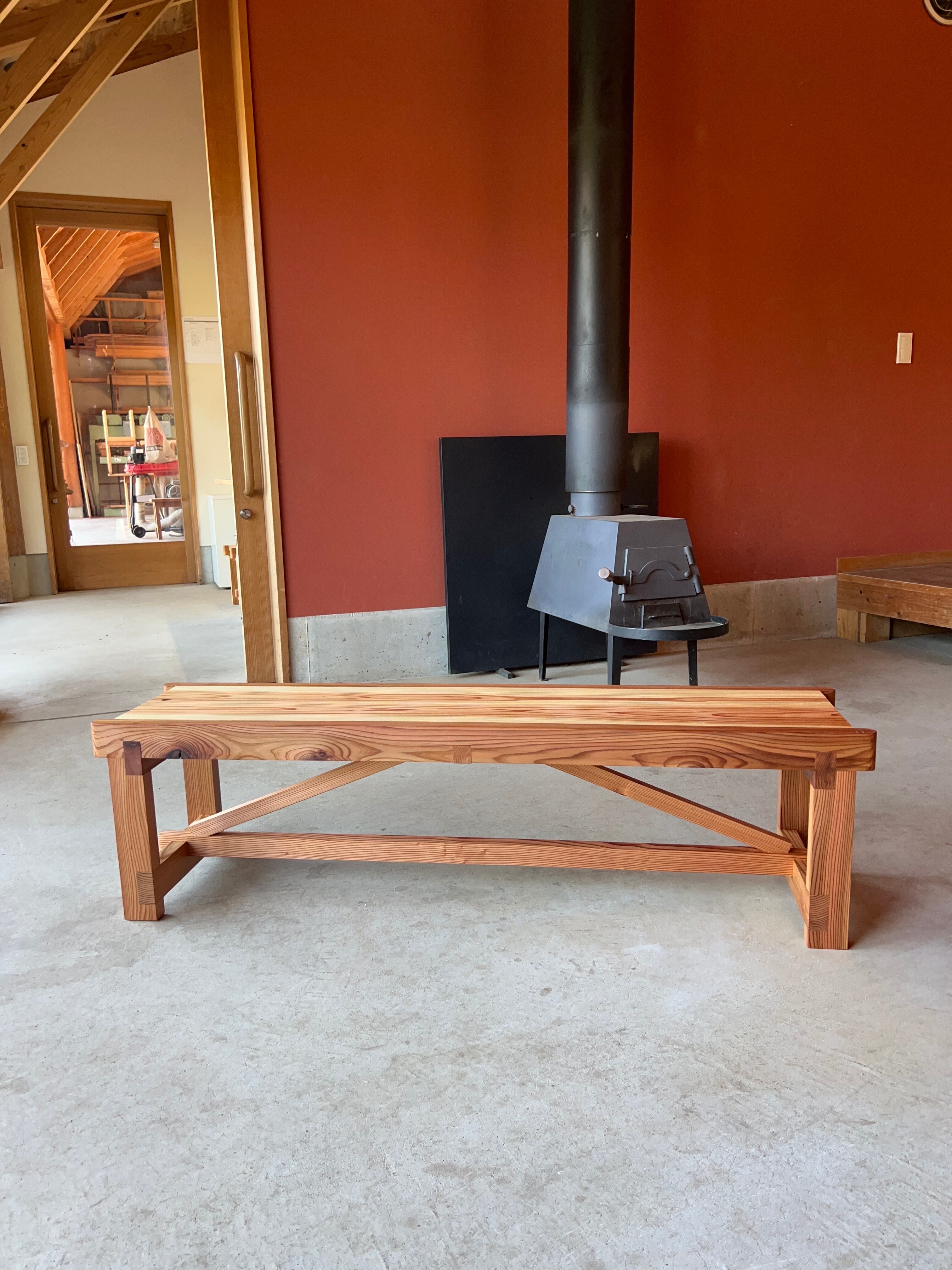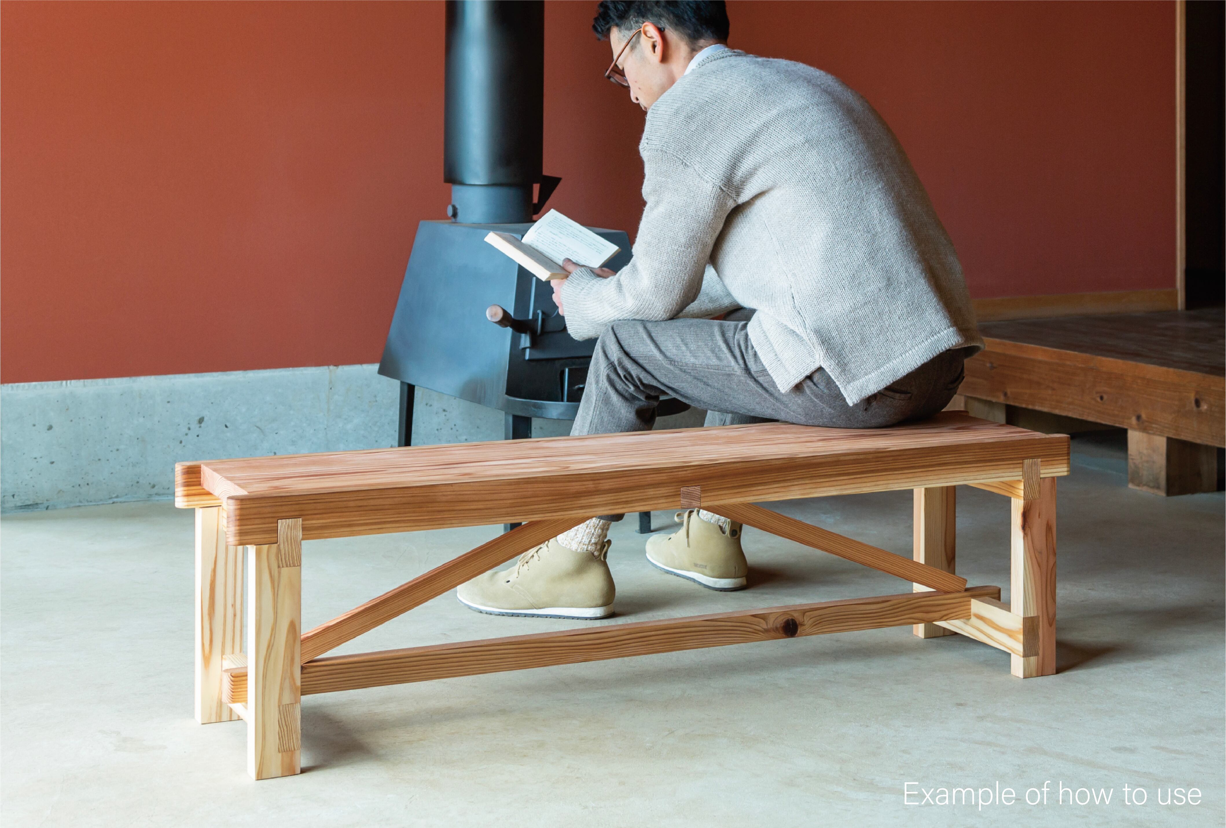程よい大きさで圧迫感の少ないコンパクトなベンチです。ゆったりとくつろげるように座面は少し低めに仕上げました。懐かしいたたずまいは時間とともにお部屋に馴染みます。
