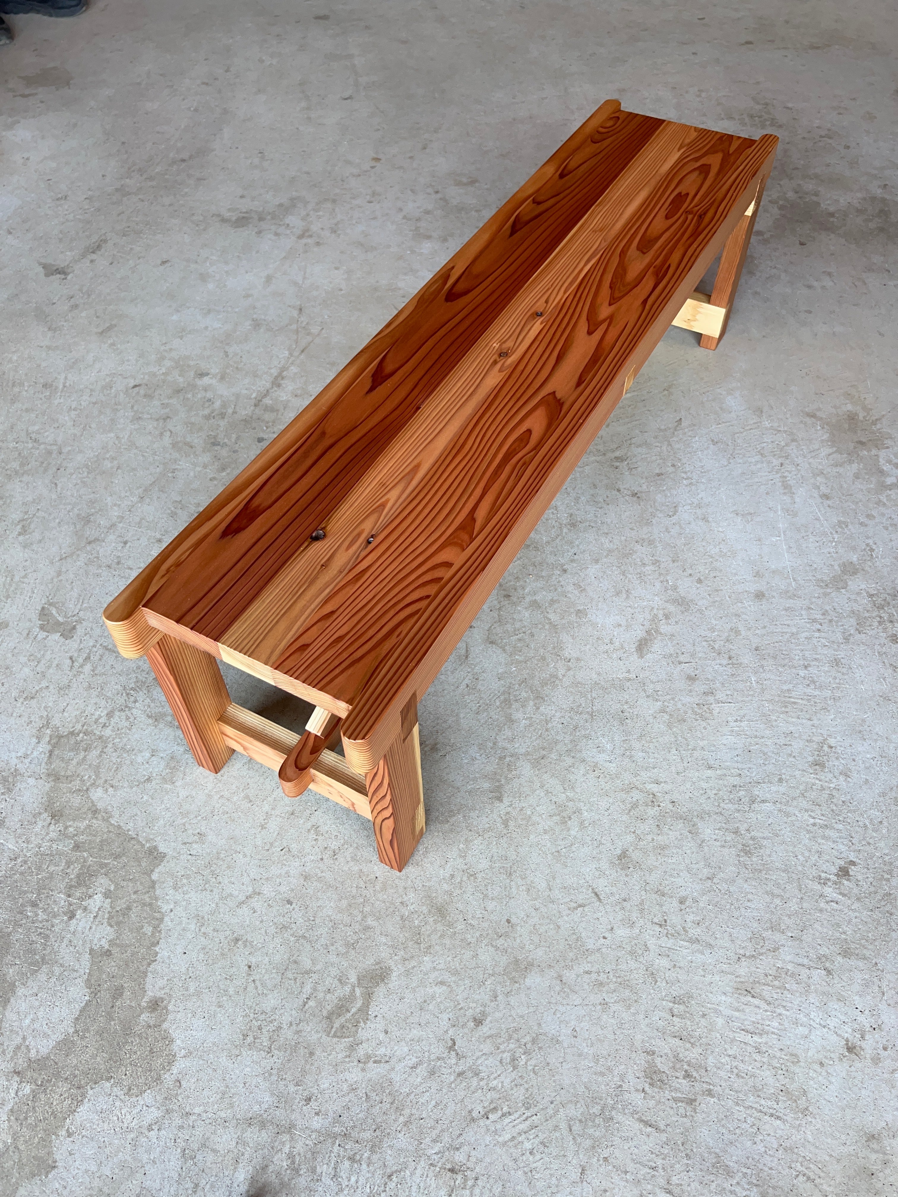 程よい大きさで圧迫感の少ないコンパクトなベンチです。ゆったりとくつろげるように座面は少し低めに仕上げました。懐かしいたたずまいは時間とともにお部屋に馴染みます。